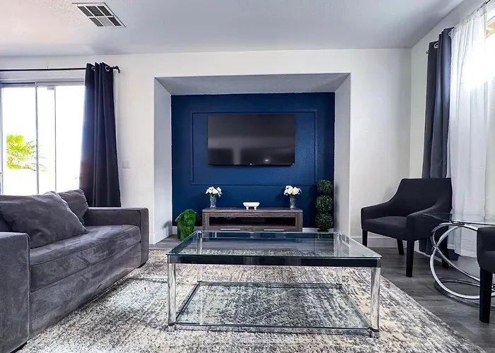 There is also a fully furnished kitchen featuring an oven and a dishwasher. This Las Vegas property is within a few blocks of café The MadHouse Coffee. Spacious 3-Bed Family Retreat Wifi & Parking villa is 11 km from Monorail - Flamingo/ Caesar's Palace train station, which makes tourist attractions in Las Vegas easily accessible.